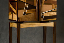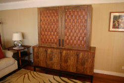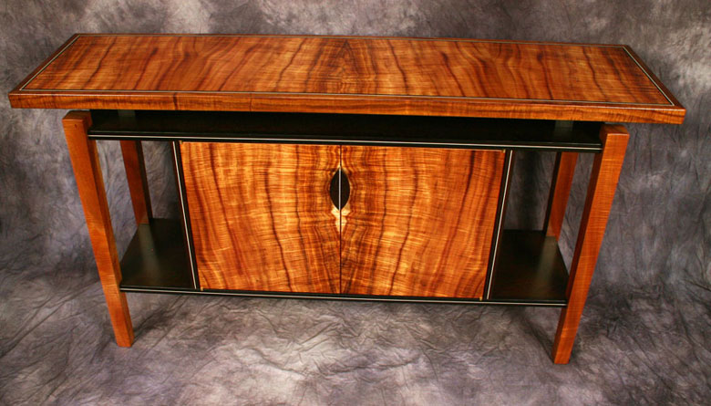 Cabinets China cabinet The Jewel Display cabinet. Glass and Curly Koa. Media cabinet, curly koa with accents of Wenge and Holly Kapa Poho Cabinet A cabinet on stand. TV media cabinet